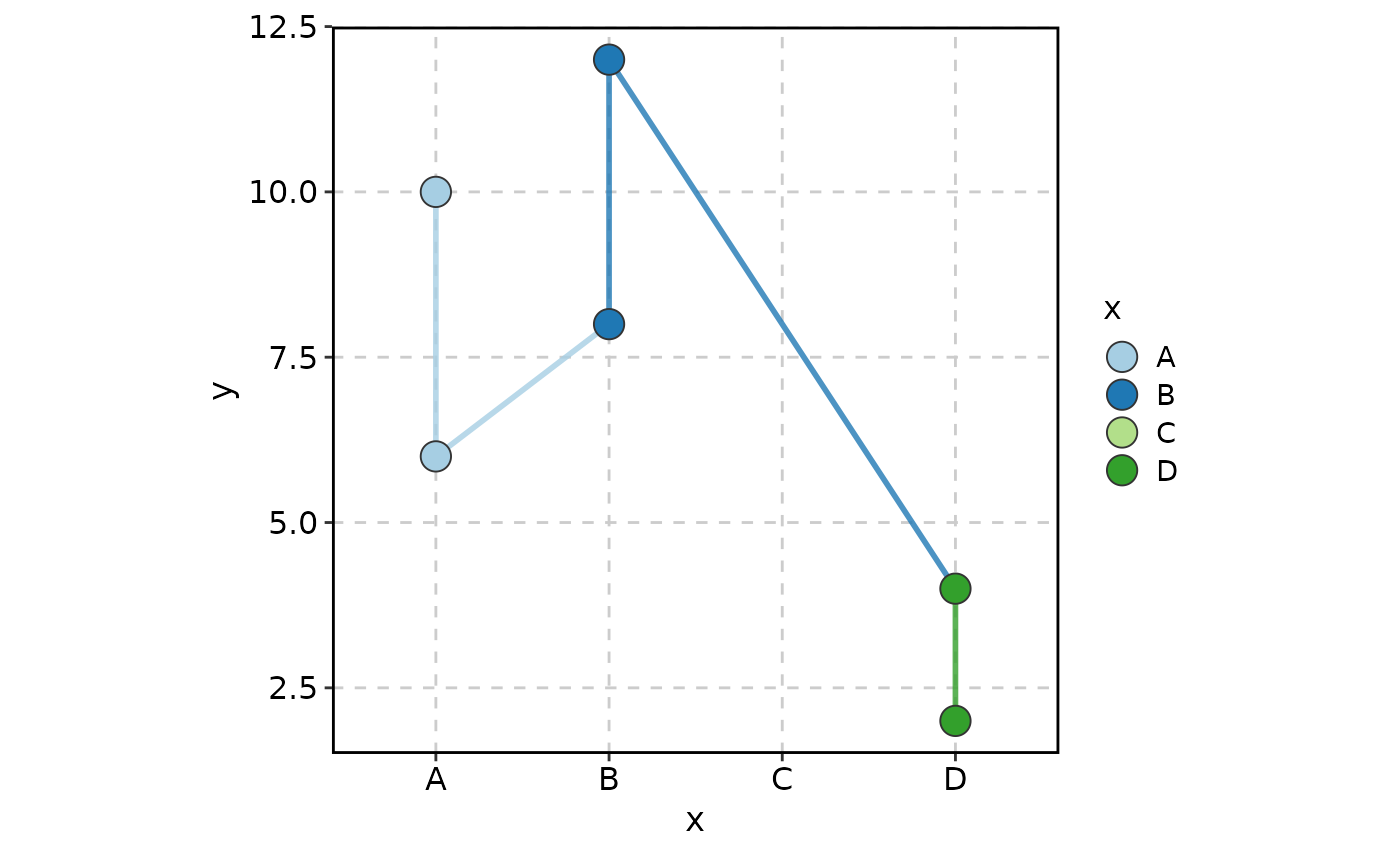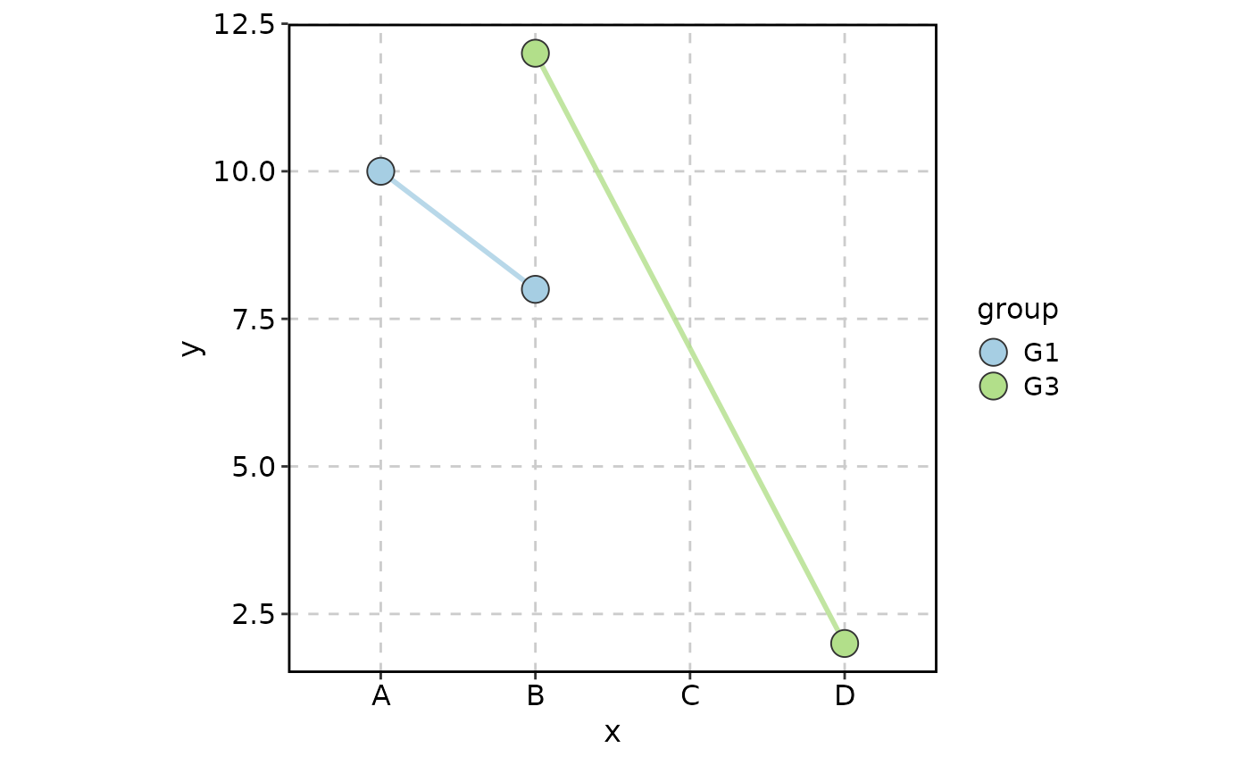 LinePlot(data, x = "x", y = "y", keep_empty = 'level')