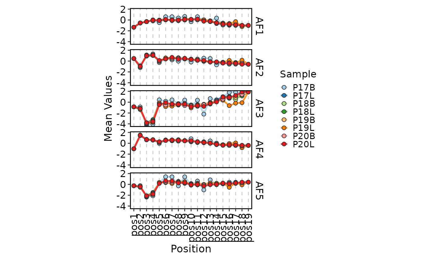ClonalPositionalPlot(data, method = "Atchley", plot_type = "line")