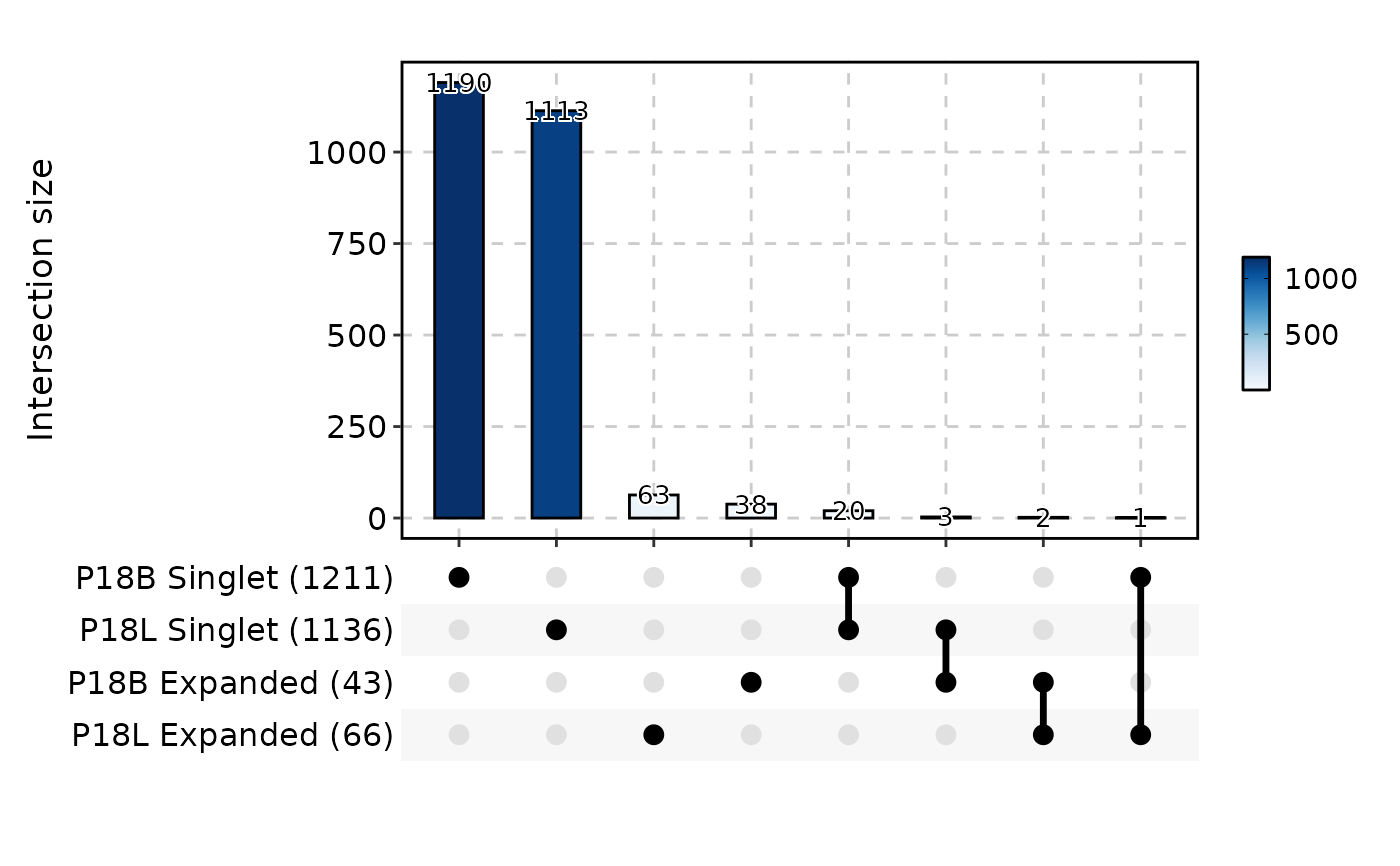 ClonalResidencyPlot(data, plot_type = "upset", groups = c("P18B", "P18L"))